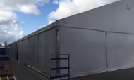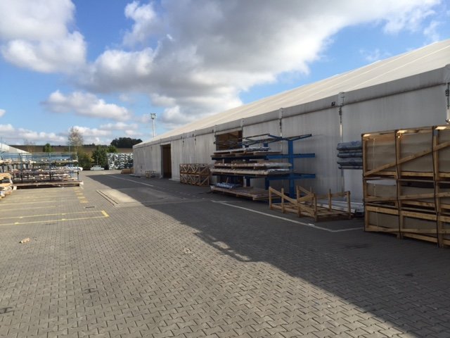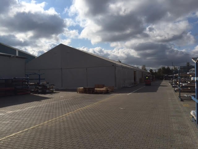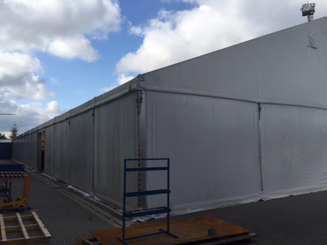 Pro klienta, společnost Lindab, jsme v Praze postavili halu o rozměrech 20x46x4m, s opláštěním z PVC v bílé barvě. Slouží pro skladování nerezových profilů a jejich ochranu před povětrnostními vlivy.