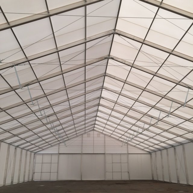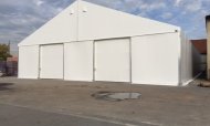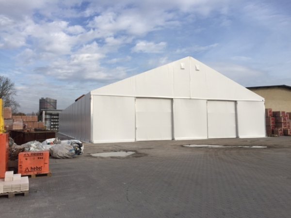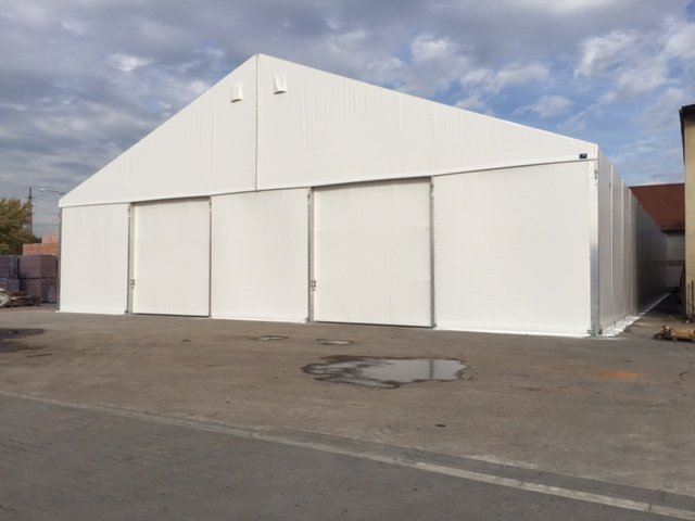 Velká skladová hala se 4 štítovými vraty. Montáž na rovném betonovém podkladu.